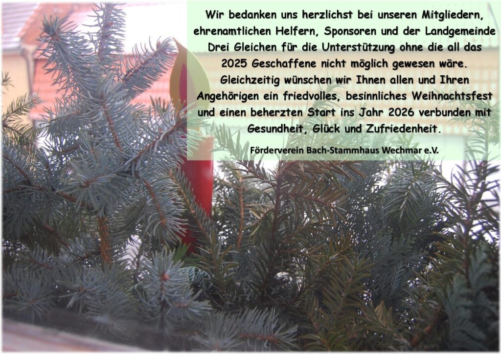 Wir, der Förderverein Bach-Stammhaus Wechmar e.V., pflegen das Bach`sche Erbe am Ursprung der musikalisch-Bachischen Familie.